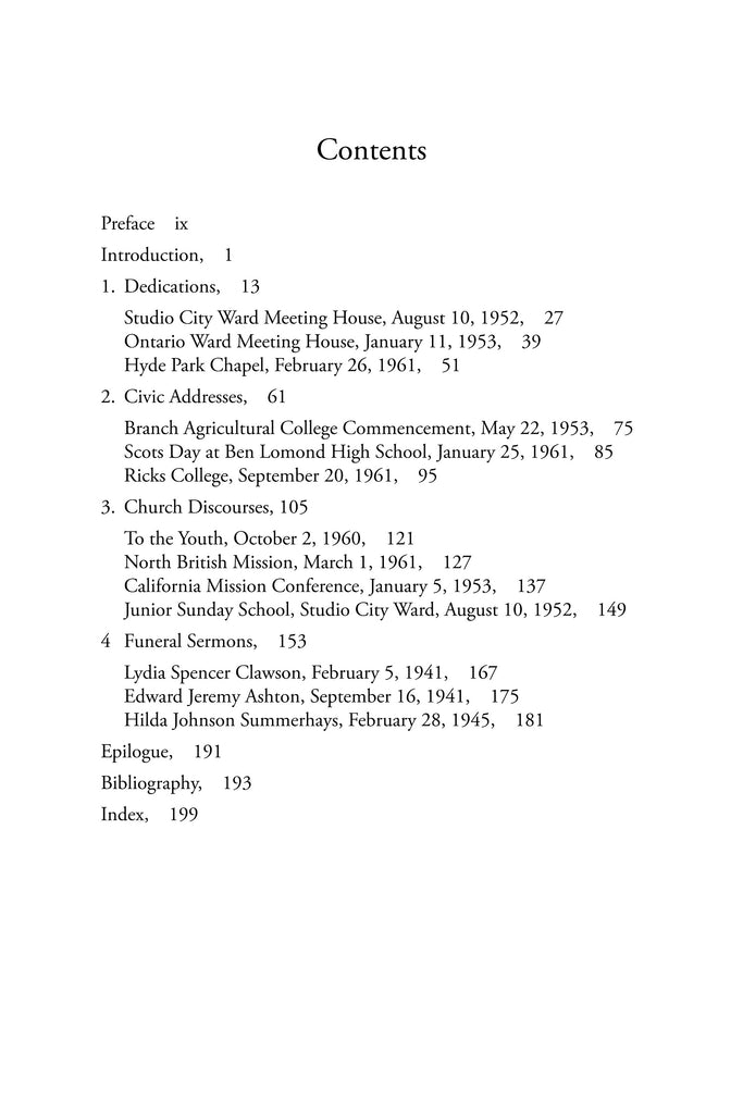During his forty-five years as a Latter-day Saint apostle and nineteen years as the prophet, David O. McKay gave thousands of speeches, including hundreds of temple and chapel dedications, civic addresses, funeral sermons, and General Conference and other Church-related talks. Many of these speeches contain some of the same prose and poetry, but no two speeches are the same. All of these discourses were written by McKay himself, and virtually all of them were typed, organized, and kept in large, legal-sized leather binders by Clare Middlemiss, his long-time personal secretary. His choice of prose reveals his favorite authors and literature, a glimpse into his personal library. It also conveys his ideals and his fervent belief in their truth.