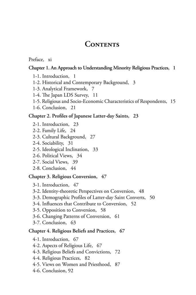 Inouye and Laurie Maffly-Kipp, who had asked us to write a chapter on how Japanese Latter-day Saints practice their religion. In order to conduct an objective, data-driven analysis, we decided to administer an anonymous survey to practicing Latter-day Saints. As we were preparing the survey, it became obvious that doing justice to the data would require not a chapter but a book. We also recognized that, realistically, we had only one chance to administer a survey, given its time- and labor-intensive nature. Hence our decision to make the survey much more comprehensive than was necessary to complete our assigned task, even though this carried a risk of deterring potential survey takers. This book is an outcome of that decision. Melissa’s and Laurie’s book has not yet been released. We hope it will be soon.
