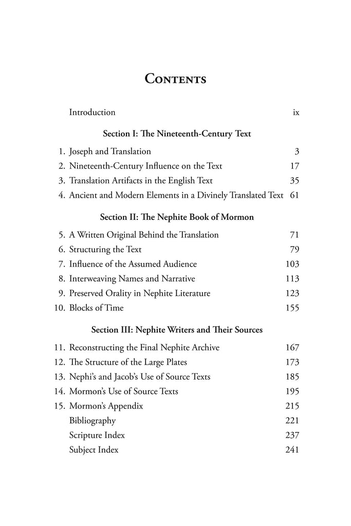 “Written as a companion to The Plates of Mormon: A Book of Mormon Study Edition Based on Textual and Narrative Structures in the English Translation, this volume bristles with insights gained through a detailed reading of the text. It represents one of the most thorough and substantive treatments of the nature of the translation, transmission, and organizational design of the Book of Mormon text to-date. This expansive study immediately rises to the top of must-read resources relative to the Book of Mormon.” — Kerry Hull, co-editor, A Hundredth Part: Exploring the History and Teachings of the Book of Mormon